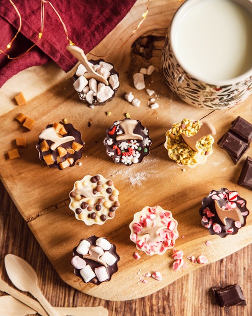 Noël approche très vite et si vous cherchez encore à ajouter des petits cadeaux bonus, vous pouvez réaliser ses sucettes de chocolat à faire fondre dans un lait bien chaud.
